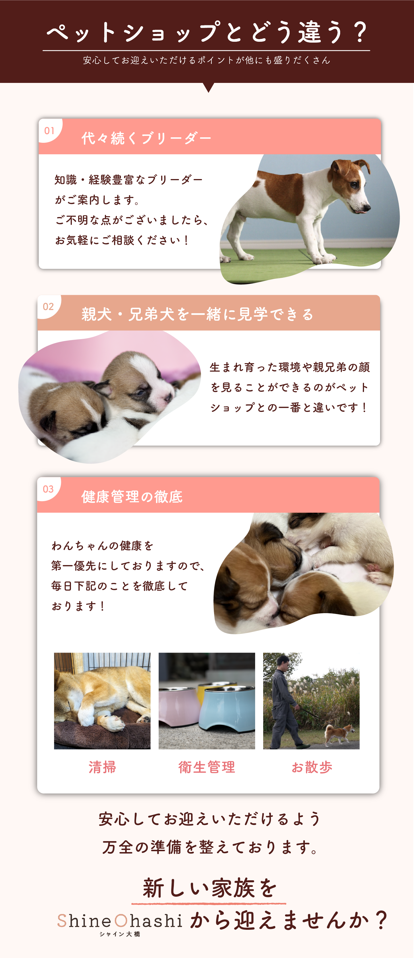 シャイン大橋 (以下「当社」)は、以下のとおり個人情報保護方針を定め、 個人情報保護の仕組みを構築し、全従業員に個人情報保護の重要性の認識と取組みを 徹底させることにより、個人情報の保護を推進致します。 個人情報の管理 当社は、お客さまの個人情報を正確かつ最新の状態に保ち、個人情報への不正アクセス・紛失・破損・改ざん・漏洩などを防止するため、セキュリティシステムの維持・管理体制の整備・社員教育の徹底等の必要な措置を講じ、安全対策を実施し個人情報の厳重な管理を行ないます。